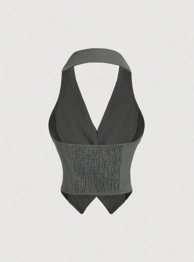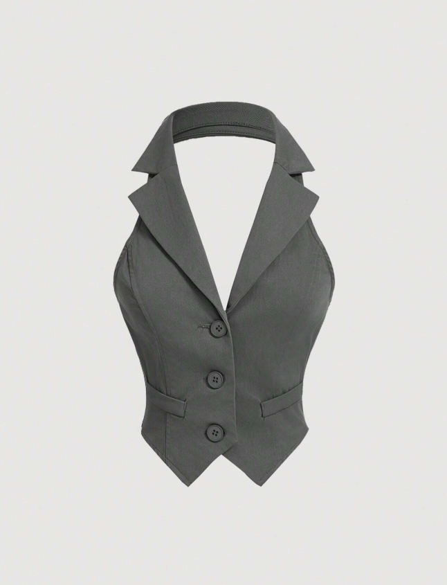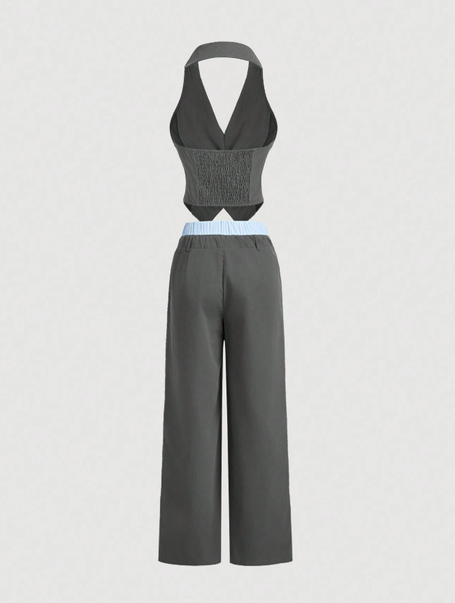 Command attention with this sleek and sophisticated ensemble, designed for the modern boss babe. Featuring a tailored halter vest with sharp lapels and a figure-flattering fit, paired with wide-leg trousers for effortless elegance. The subtle contrast waistband adds a chic touch, making it perfect for office wear, business meetings, or stylish evening outings.